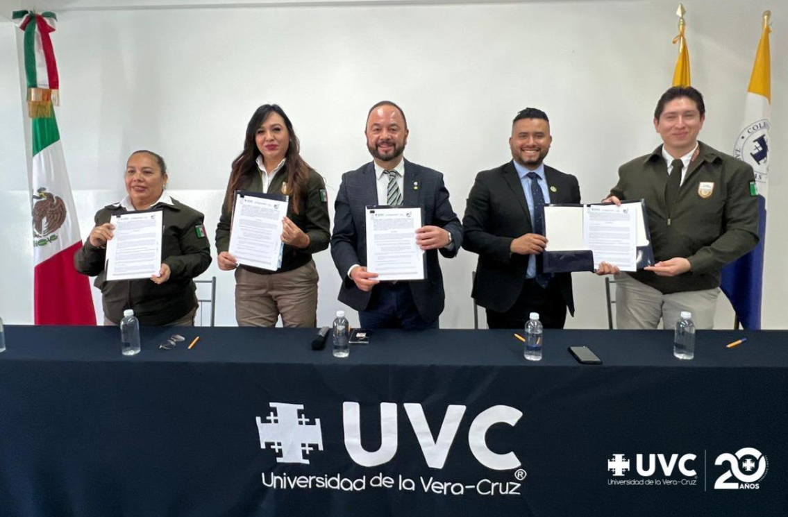Durante el acto protocolario, la titular de la Oficina de Representación, Celeste Arteaga Ramos, y el rector de la UVC, Carlos Gabriel López Aranda, formalizaron el acuerdo que sienta las bases para impulsar actividades conjuntas en materia académica, técnica y de capacitación.