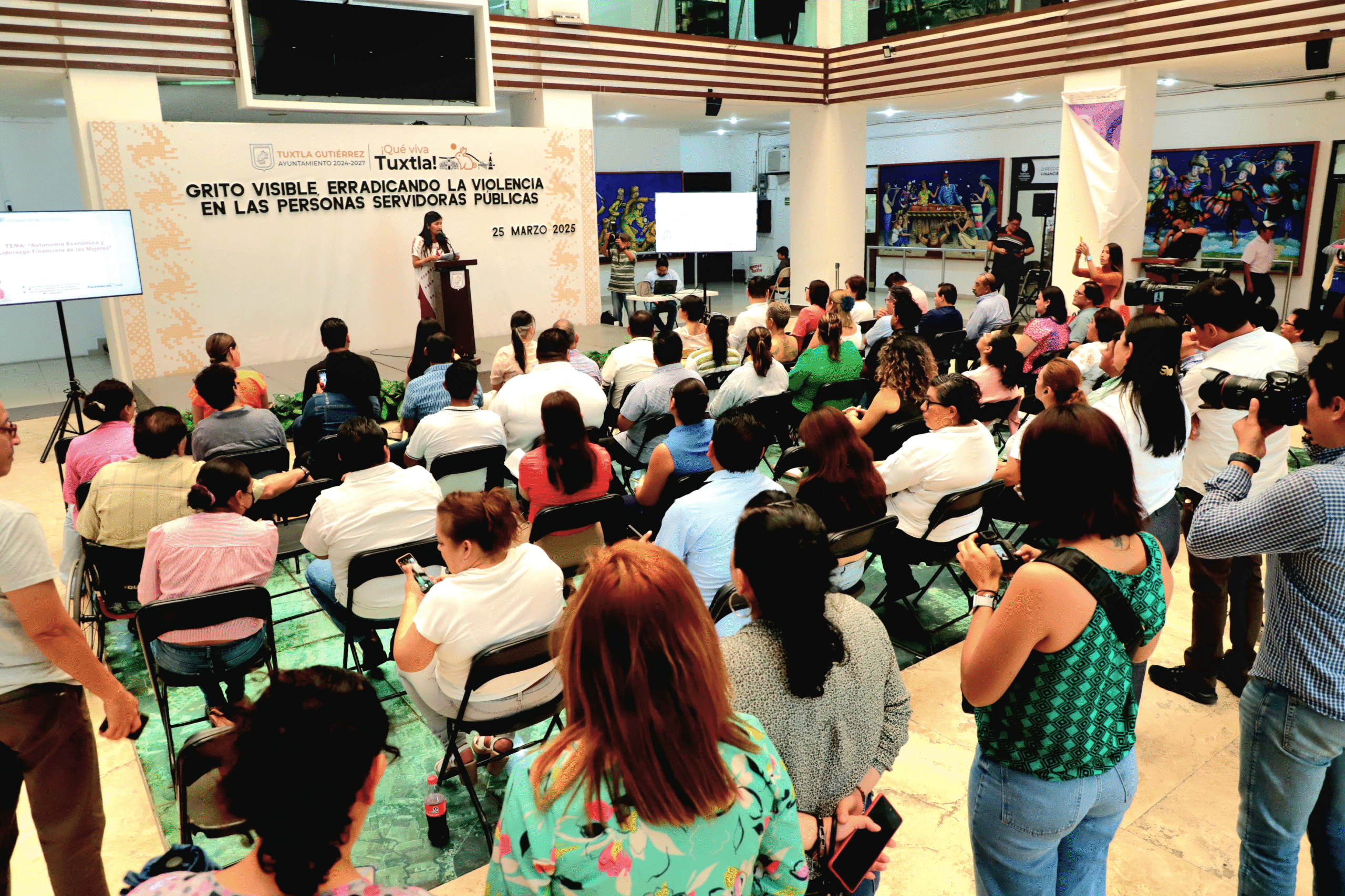 Estas acciones son fundamentales para garantizar el derecho de las mujeres y niñas a una vida libre de violencia, por tal motivo el Ayuntamiento, que encabeza el alcalde Angel Torres, impulsa políticas públicas, programas de prevención y atención integral, como parte del Plan Tuxtla 4T, para concientizar y lograr una sociedad más justa y equitativa. En el evento estuvieron presentes la Síndica Municipal, Emma Orantes, así como ponentes, funcionarias y funcionarios públicos.