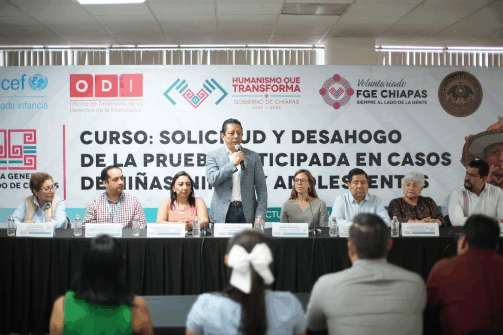 En su intervención, el representante de UNICEF, Edgar Arturo Olvera Canche, reconoció a la Fiscalía de Chiapas por ser la pionera en la realización de este curso y agregó que el UNICEF continuará siendo aliada de estas acciones en coordinación con la Oficina de la Defensoría de los Derechos de la Infancia (ODI).