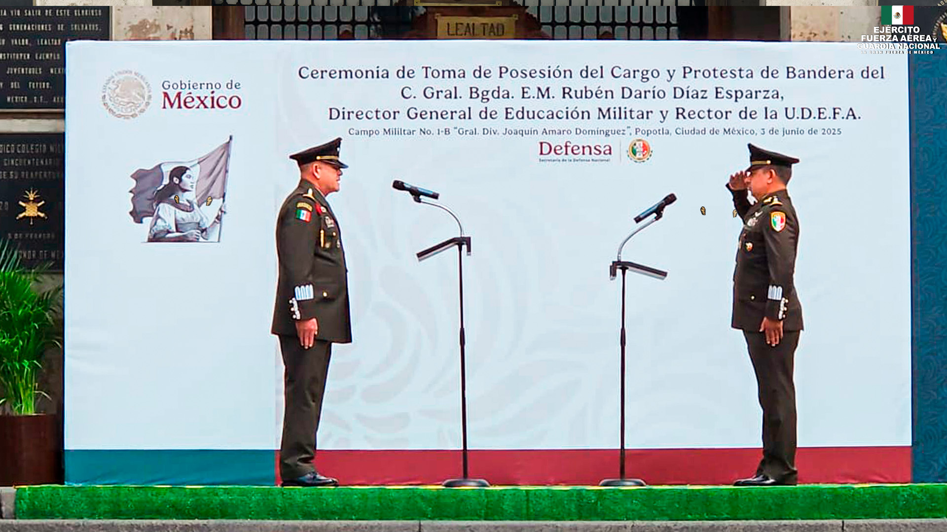En ceremonia protocolaria realizada en el Campo Militar No. 1-B “Gral. Div. Joaquín Amaro Domínguez”, el General de División de Estado Mayor Enrique Covarrubias López, Subsecretario de la Defensa Nacional, tomó protesta y dio posesión al General de Brigada de Estado Mayor Rubén Darío Díaz Esparza como nuevo Director General de Educación Militar y Rector de la Universidad del Ejército y Fuerza Aérea. El nombramiento fue instruido por la presidenta de México, Claudia Sheinbaum Pardo, con fecha efectiva del 1 de junio de 2025.
