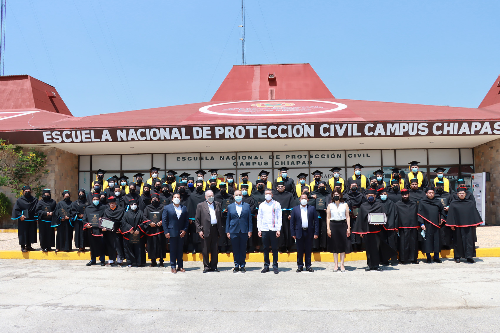 En la Ceremonia de Graduación de las y los egresados de la Tercera Generación de la Licenciatura en Protección Civil, Cuarta Generación de la Maestría en Gestión Integral de Riesgos y Protección Civil y Segunda Generación del Doctorado en Gestión Integral de Riesgos y Protección Civil, de la Escuela Nacional de Protección Civil Campus Chiapas, se reconoció la importancia de fortalecer los conocimientos en este rubro, pues además de contribuir a la salvaguarda de la integridad y el patrimonio de la población, se abona a la seguridad del estado y del país.