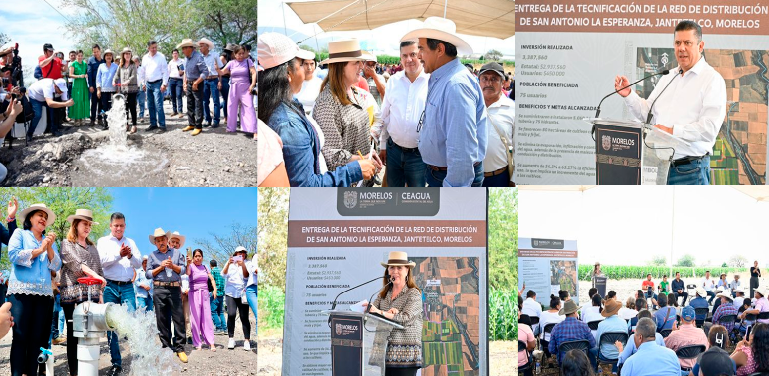 Jantetelco, Morelos.- La gobernadora Margarita González Saravia entregó la tecnificación de la red de distribución de agua en el ejido San Antonio La Esperanza, municipio de Jantetelco, una obra histórica que beneficiará directamente a productores agrícolas, mejorando la eficiencia en el riego y fortaleciendo el campo en la región.