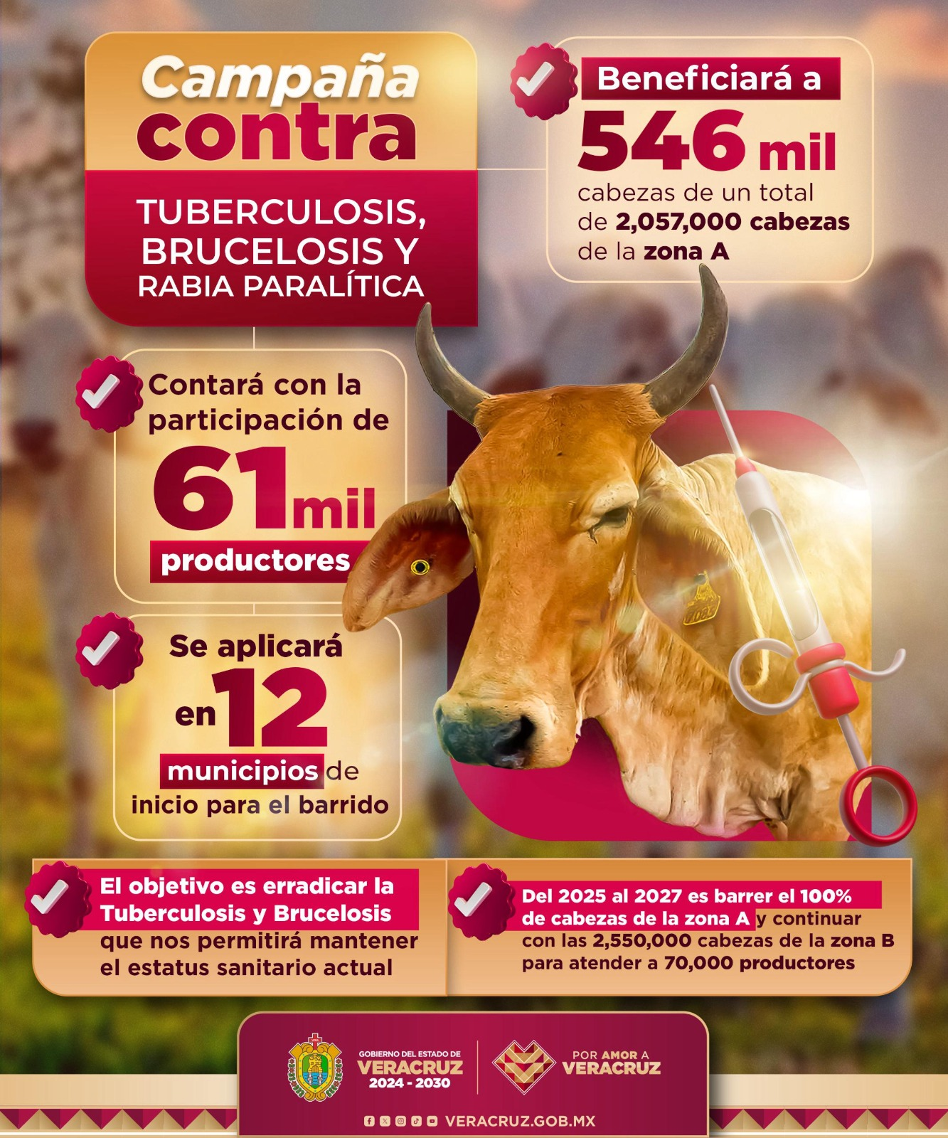 Con el compromiso de mantener hatose ganaderos sanos y libres de enfermedades, el Gobierno de Veracruz implementa un programa integral en coordinación con las y los productores, con el objetivo de preservar el estatus sanitario del estado y garantizar la calidad del sector pecuario.