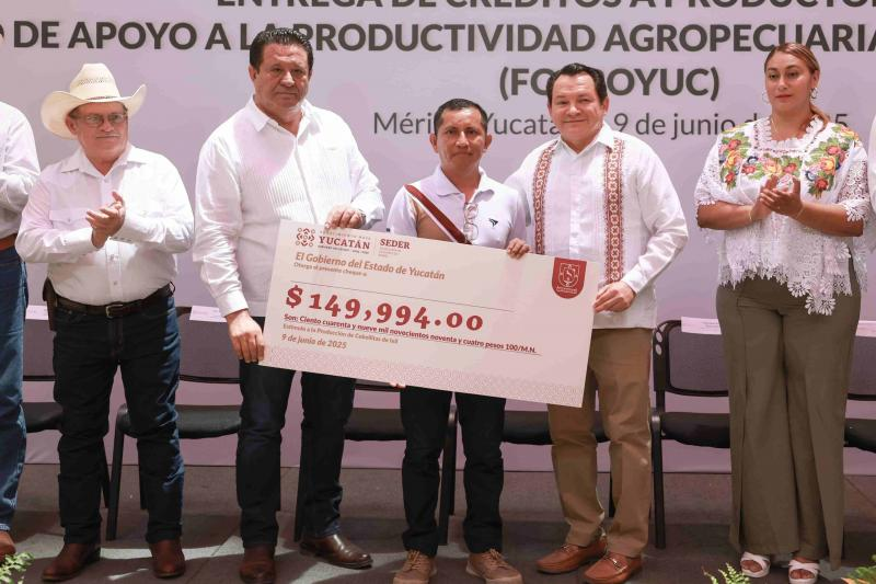 El Gobierno del Renacimiento Maya, encabezado por el gobernador Joaquín Díaz Mena, entregó créditos productivos por un monto cercano a los 5 millones de pesos a productores del campo yucateco, destinados a impulsar actividades como ganadería bovina, apicultura, avicultura, agricultura, agroindustria y pesca en 12 municipios de la entidad.