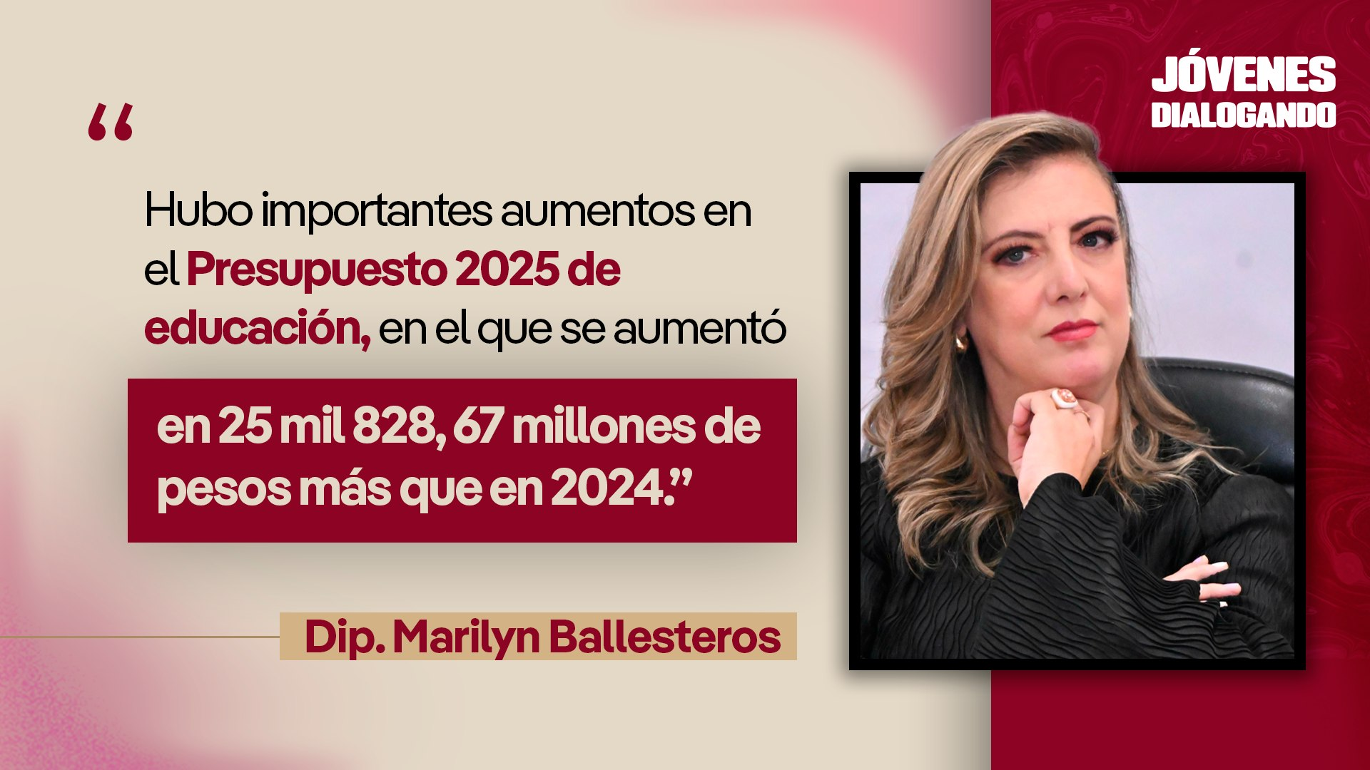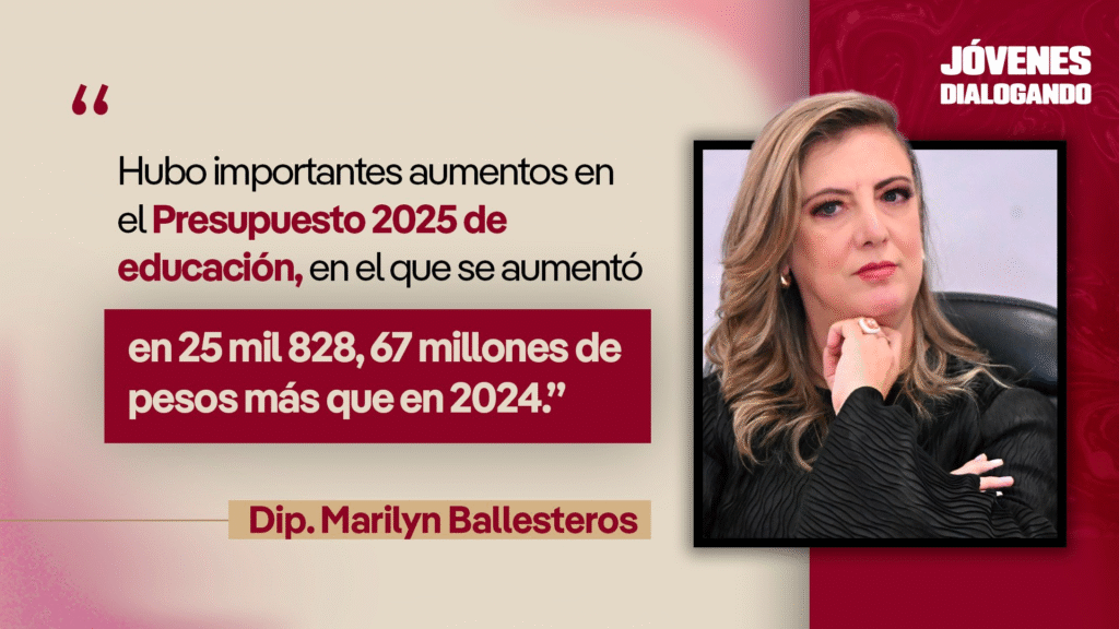 La diputada Marilyn Ballesteros, integrante del grupo parlamentario de Morena en la Cámara de Diputadas y Diputados, afirmó que la educación es una prioridad en el proyecto de la Cuarta Transformación, motivo por el cual se han destinado mayores recursos para garantizar una preparación académica de calidad y con amplio acceso para las y los jóvenes de México.
