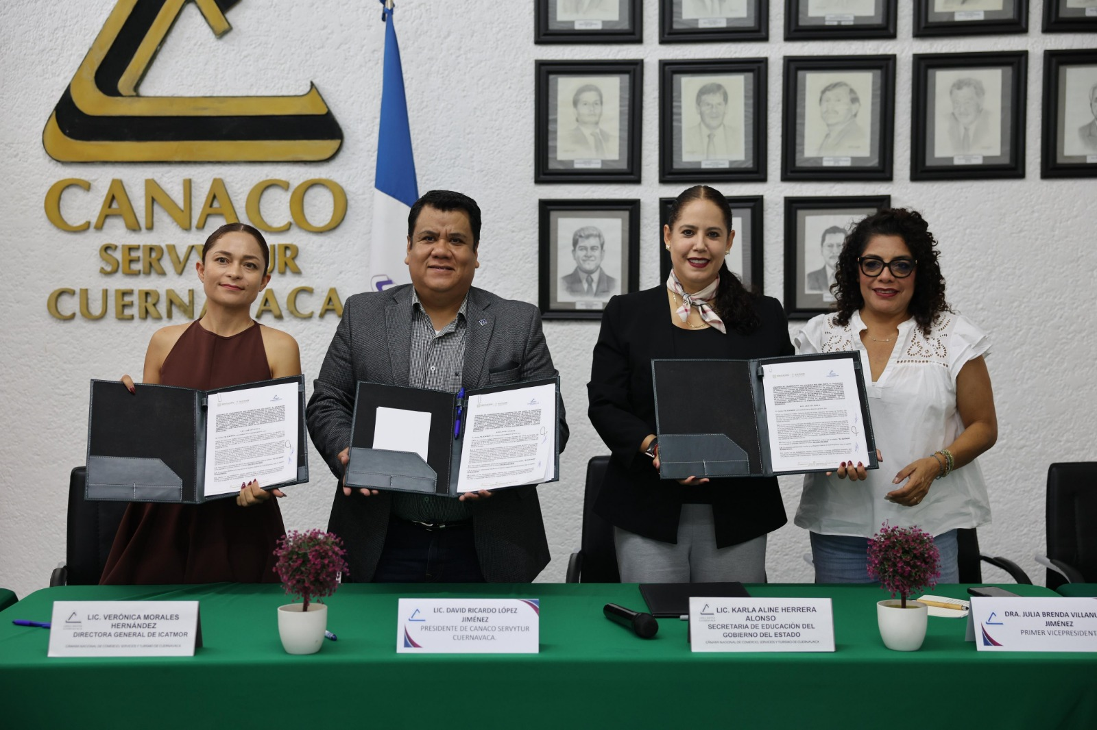 Con el objetivo de fomentar el desarrollo económico y fortalecer el sector productivo del estado, la Secretaría de Educación de Morelos, a través del Instituto de Capacitación para el Trabajo del Estado de Morelos (Icatmor), firmó un convenio de colaboración con la Cámara Nacional de Comercio, Servicios y Turismo (Canaco-Servytur) de Cuernavaca. Esta alianza busca capacitar a personas trabajadoras y empresarias mediante programas especializados.