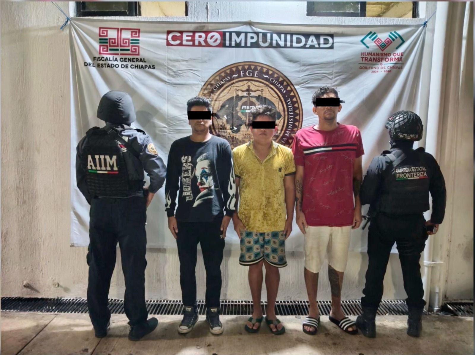Mientras que, por los hechos ocurridos en el municipio de Cacahoatán, Llaven Abarca precisó que las autoridades aprehendieron a Enrique “N”, alias “Kike”; Edgar “N”, alias “Colin” y a Rolfi “N”, alias “Fito”, como presuntos responsables del feminicidio de quien en vida respondiera al nombre de Ana “N”, por hechos ocurridos el 11 de abril en el barrio Álvaro Obregón.