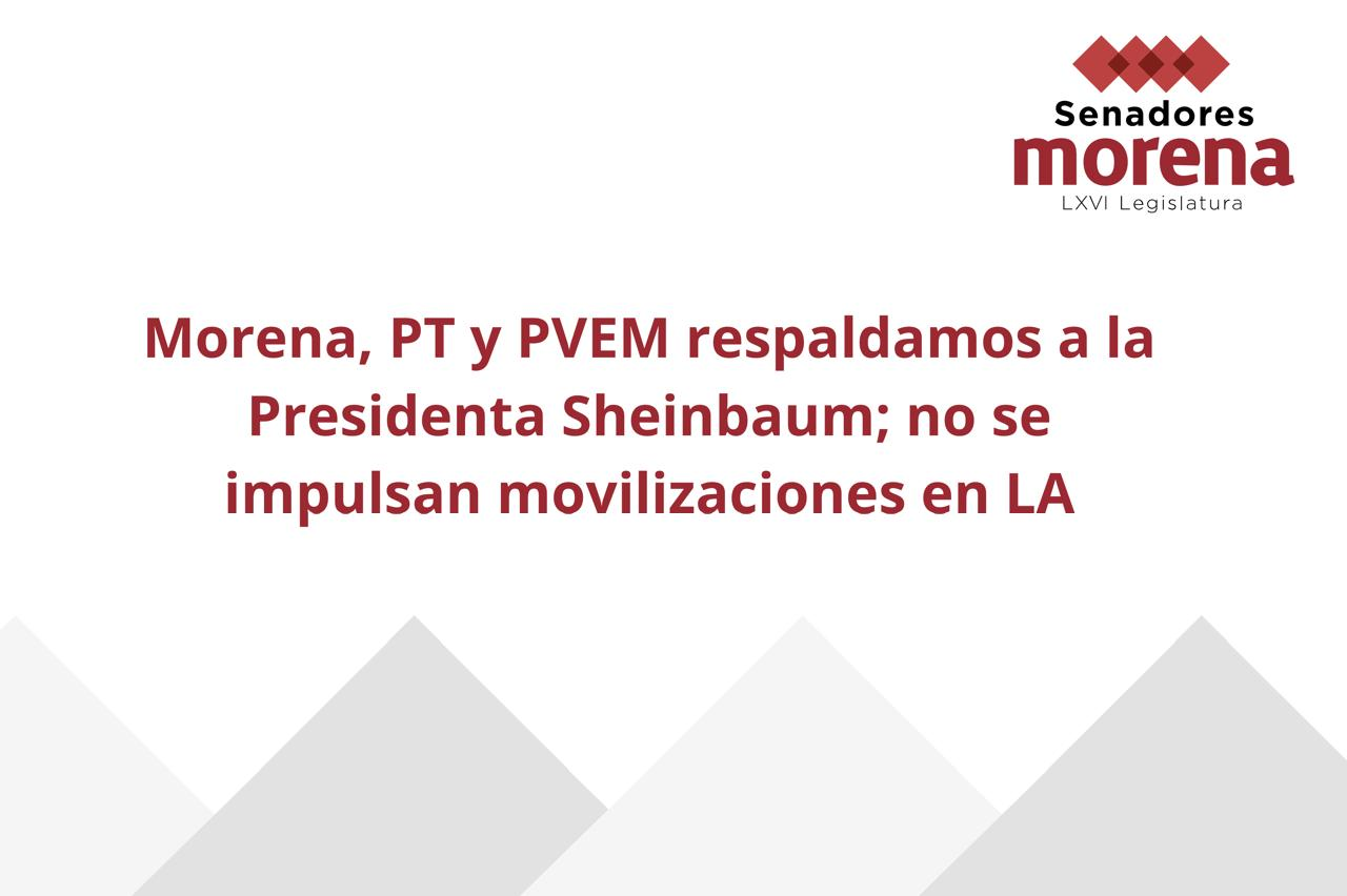 Los Grupos Parlamentarios de Morena, el Partido del Trabajo (PT) y el Partido Verde Ecologista de México (PVEM) en el Senado de la República refrendaron su respaldo total a la presidenta Claudia Sheinbaum Pardo, al tiempo que desmintieron categóricamente cualquier intento de movilización promovida por el gobierno mexicano o su movimiento en la ciudad de Los Ángeles, California.