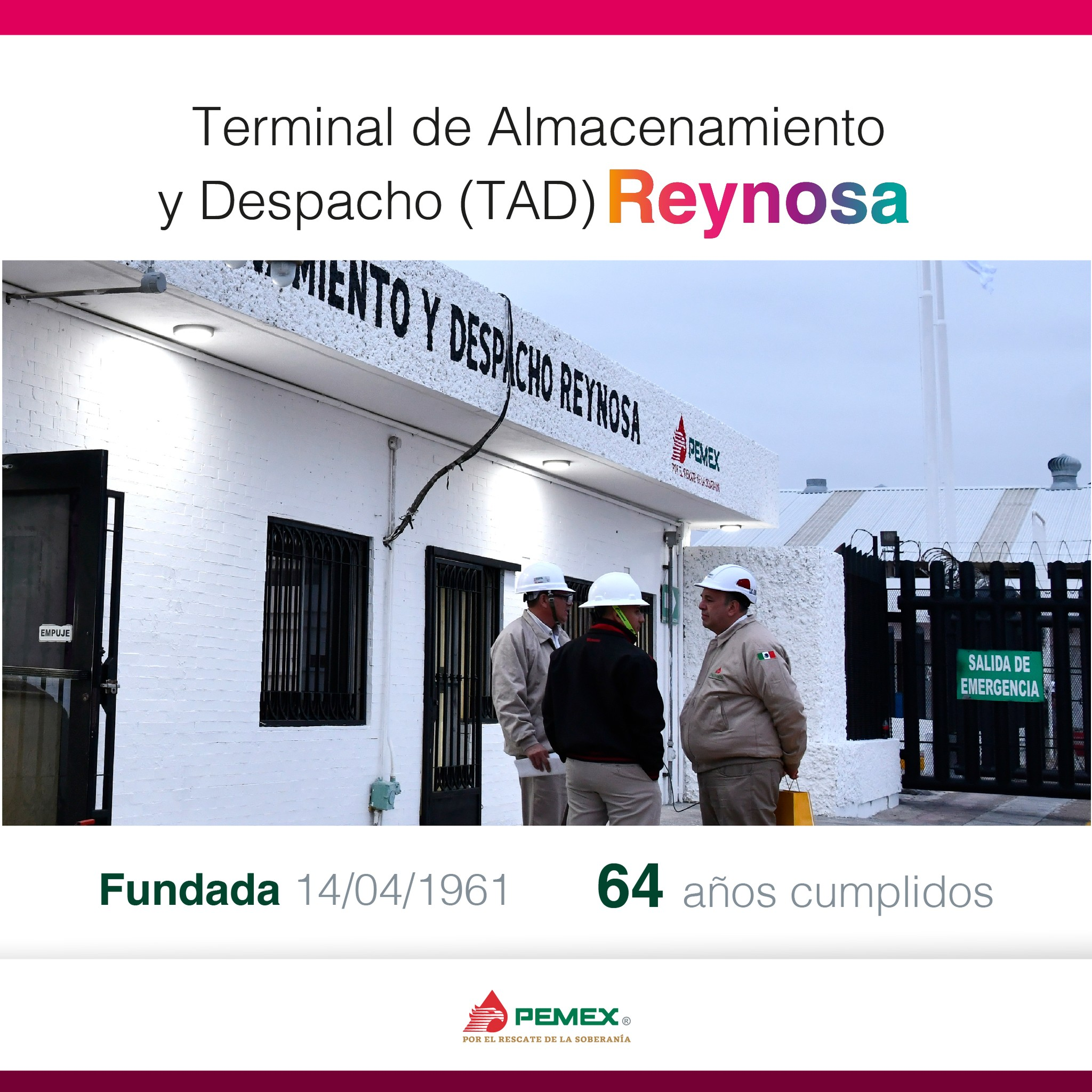 Reynosa, Tamps. – Petróleos Mexicanos (Pemex) conmemoró el 64 aniversario de la Terminal de Almacenamiento y Despacho (TAD) Reynosa, infraestructura estratégica para el suministro energético en el norte del país. Fundada el 14 de abril de 1961, esta terminal ha sido clave en las operaciones logísticas de distribución de combustibles en la región.
