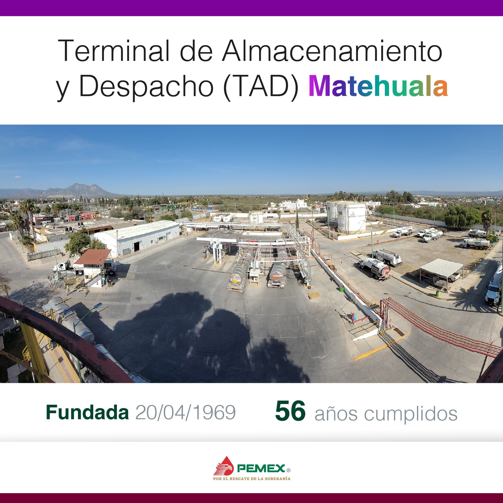 MATEHUALA, S.L.P.— En el marco del aniversario de la Terminal de Almacenamiento y Despacho (TAD) Matehuala, ubicada en el estado de San Luis Potosí, Petróleos Mexicanos (Pemex) reconoció el compromiso, disciplina y responsabilidad de las y los trabajadores que integran esta instalación estratégica, la cual destaca por más de 30 años de operación sin registrar accidentes laborales.