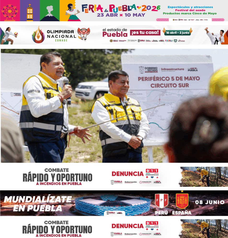 El gobernador Alejandro Armenta Mier impulsa la construcción del Circuito Sur del Periférico 5 de Mayo, una obra estratégica que busca atender la saturación vial en la zona sur-oriente de la ciudad de Puebla y fortalecer la conectividad regional, con una visión de desarrollo proyectada para los próximos 50 años.
