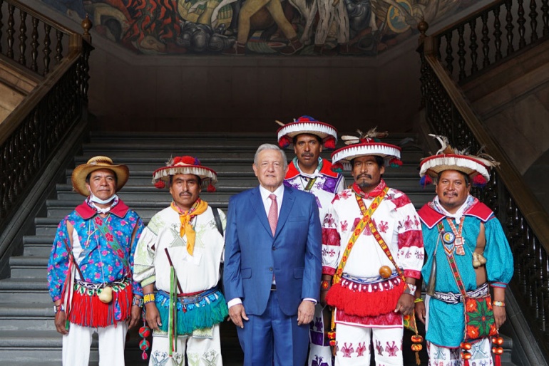 El presidente Andrés Manuel López Obrador se reunió en Palacio Nacional con autoridades de la comunidad wixárika.