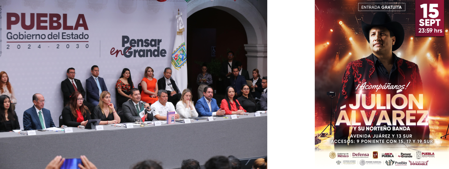 El gobernador de Puebla, Alejandro Armenta, anunció que las celebraciones por el Día de la Independencia se llevarán a cabo en un ambiente de paz, seguridad y convivencia familiar, gracias a un operativo especial que contará con la participación de más de 3 mil elementos de la Secretaría de Marina, Secretaría de la Defensa Nacional, Guardia Nacional y Policía Estatal. Durante su conferencia en Casa Aguayo, aseguró que estas fiestas patrias representan un espacio de unión y arraigo cultural para las y los poblanos.
