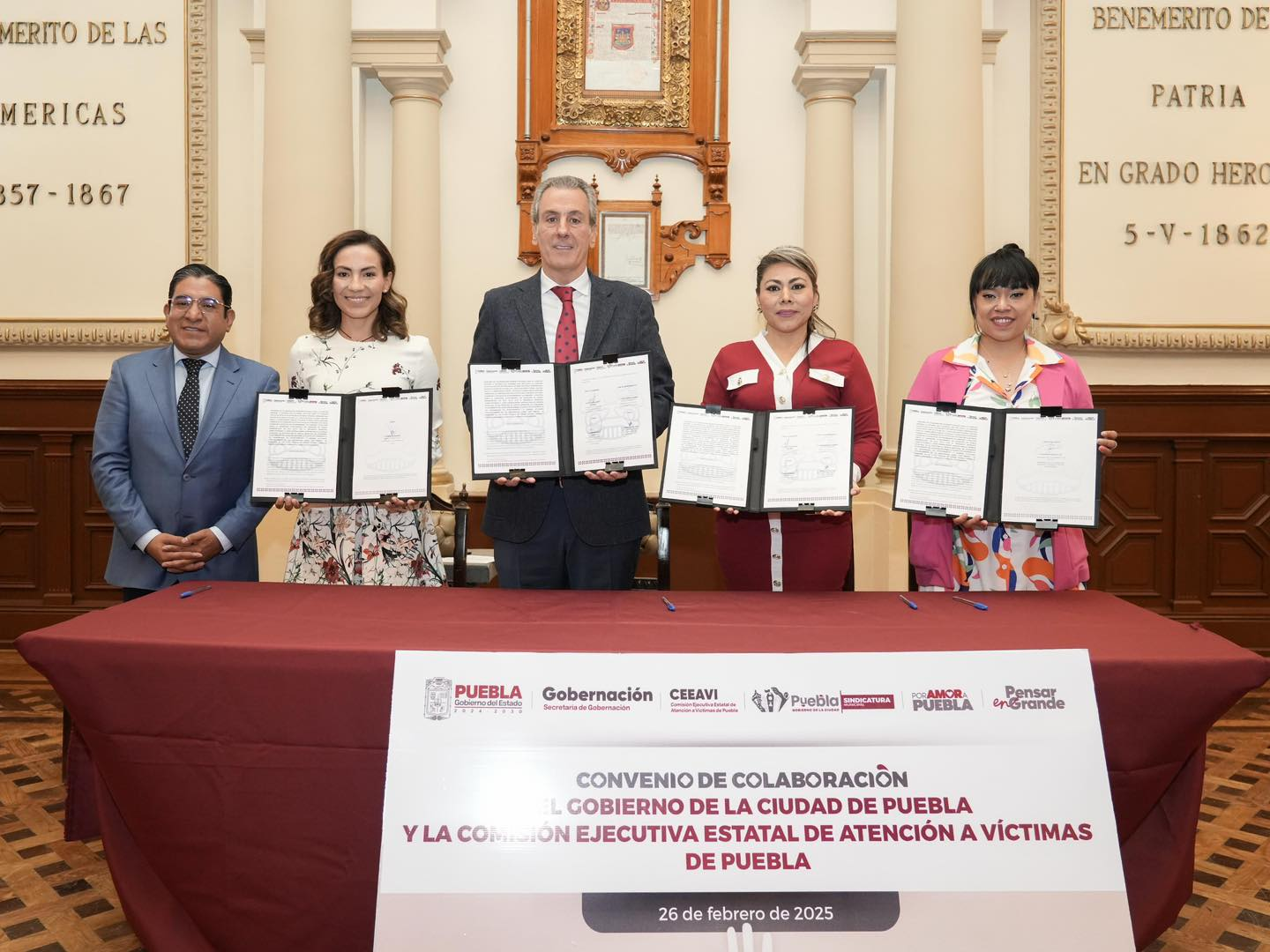 El Ayuntamiento de Puebla firmó un convenio con la Comisión Ejecutiva de Atención a Víctimas del Estado de Puebla (CEEAVI) con el objetivo de mejorar la calidad de los servicios, garantizar la reparación del daño y establecer mecanismos de colaboración que permitan brindar atención integral a las víctimas.