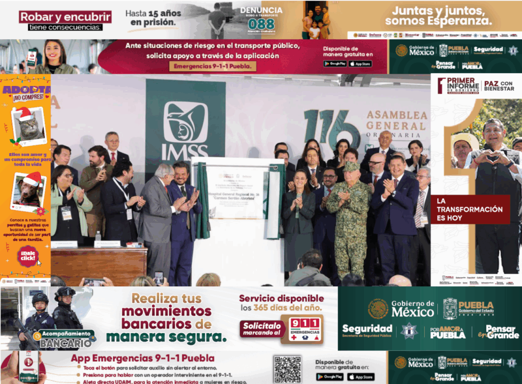 La presidenta de México, Claudia Sheinbaum Pardo, encabezó la inauguración del Hospital General Regional No. 36 “Carmen Serdán Alatriste” en Puebla, junto al gobernador Alejandro Armenta y el director general del IMSS, Zoé Robledo. La reapertura del nosocomio marca el cierre de ocho años de abandono tras el sismo de 2017 y representa un nuevo compromiso con la salud pública en la entidad.