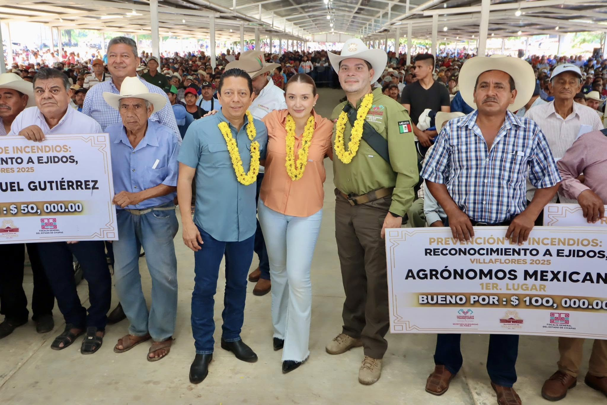 Como reconocimiento a estas contribuciones, se anunció la entrega de un premio de 100 mil pesos al ejido Agrónomos Mexicanos, así como 50 mil pesos a los ejidos Guadalupe Victoria y Joaquín Miguel Gutiérrez. Además, el gobernador Eduardo Ramírez Aguilar otorgó un incentivo de 10 mil pesos a cada uno de los 11 ejidos que más destacaron en la reducción de quemas.