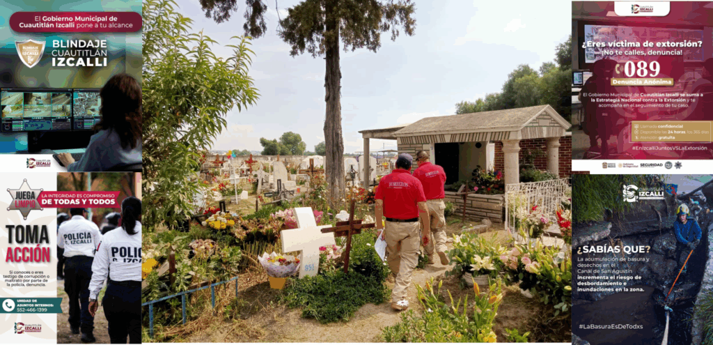 Estas acciones se desarrollan en coordinación con dependencias como la Comisaría General de Seguridad Ciudadana, Operagua, la Dirección de Servicios Públicos y la Dirección de Desarrollo Económico. El Gobierno Municipal de Cuautitlán Izcalli reafirma su compromiso con la protección y bienestar de todas las familias izcallenses en estas fechas de tradición y memoria.