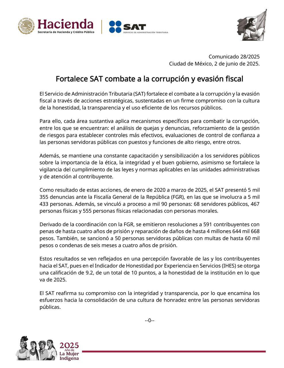 El SAT subrayó que estas acciones no solo promueven una relación más transparente entre la autoridad fiscal y los contribuyentes, sino que contribuyen a una recaudación más justa y equitativa para el bienestar del país.