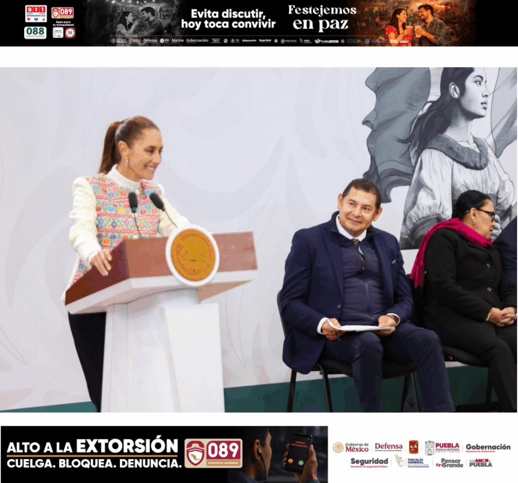 La mandataria federal destacó proyectos estratégicos como la construcción de la Carretera de la Mixteca Poblana, compromiso asumido desde su campaña, así como la ampliación de la caseta de Amozoc y el saneamiento del Río Atoyac, acciones programadas para los años 2026 y 2027 que forman parte de una agenda integral de infraestructura.