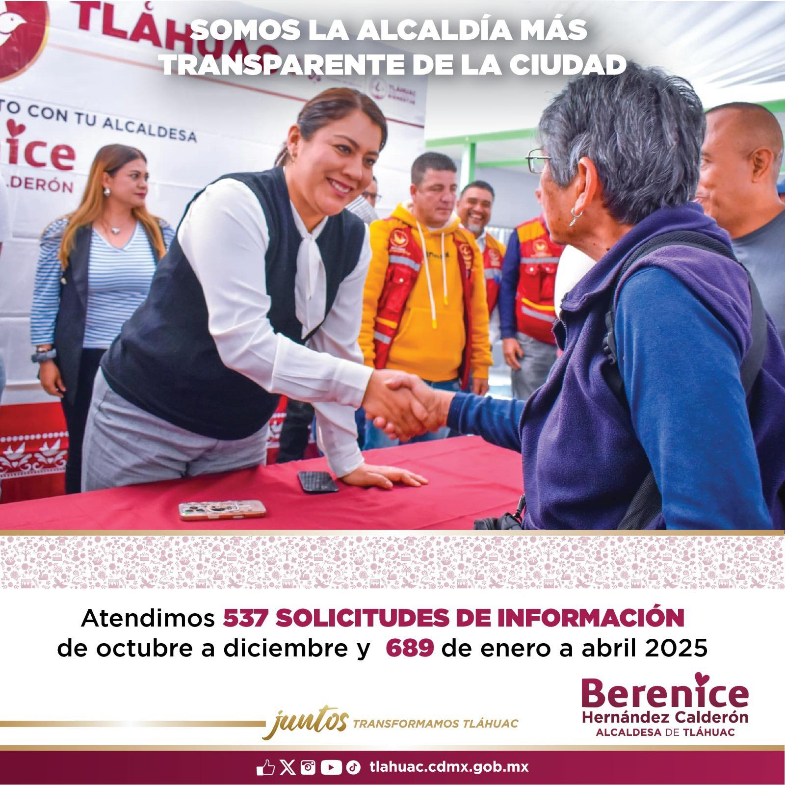 Tláhuac, CDMX.– Con un firme compromiso hacia la rendición de cuentas y la transparencia institucional, la Alcaldía Tláhuac se posiciona como la más transparente de la Ciudad de México, al atender de forma oportuna 1,226 solicitudes de información durante el último semestre.