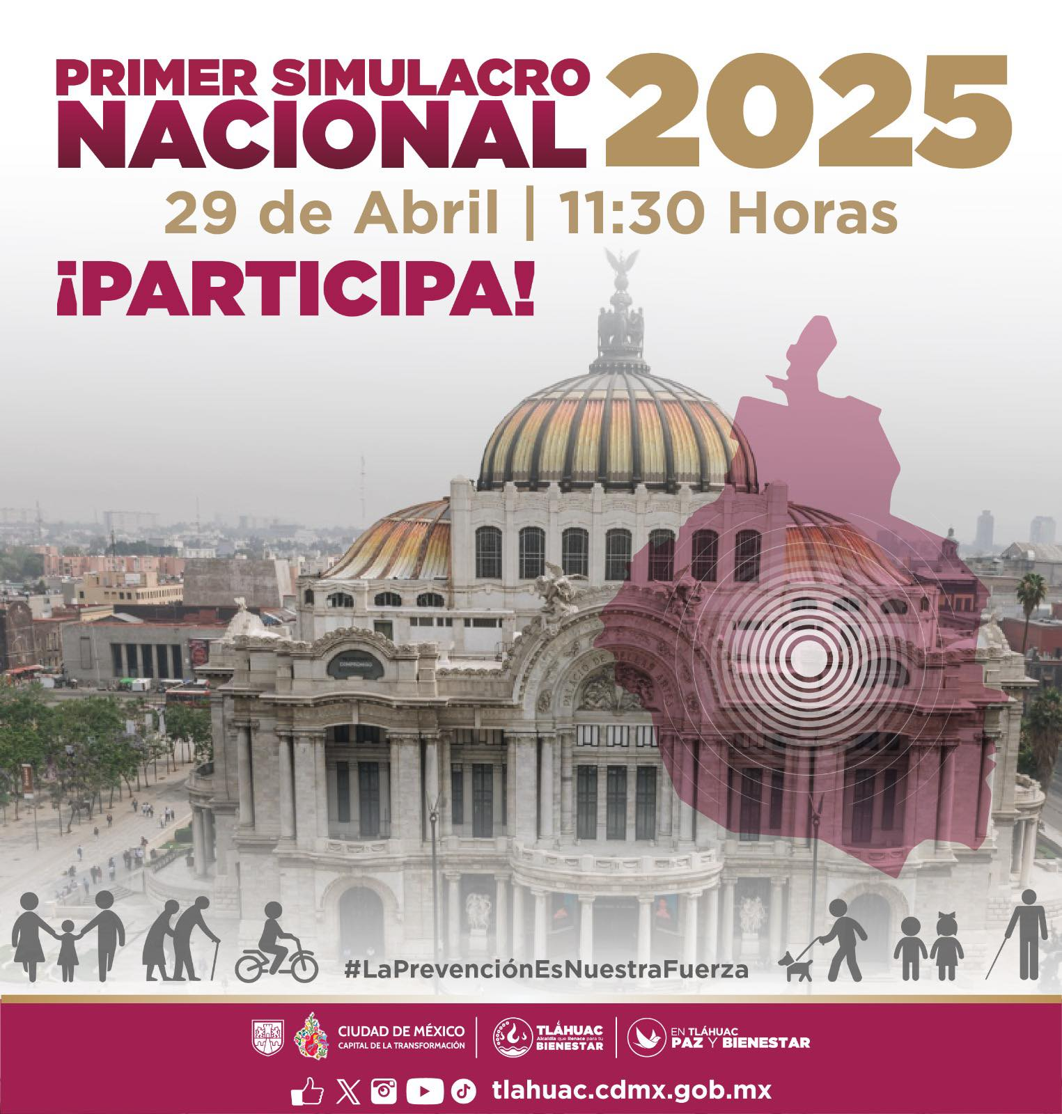 Con el objetivo de promover una cultura de la prevención y preparar a la ciudadanía ante posibles emergencias, la Alcaldía Tláhuac invita a participar activamente en el Primer Simulacro Nacional 2025, que se llevará a cabo el próximo 29 de abril a las 11:30 horas en todo el país.