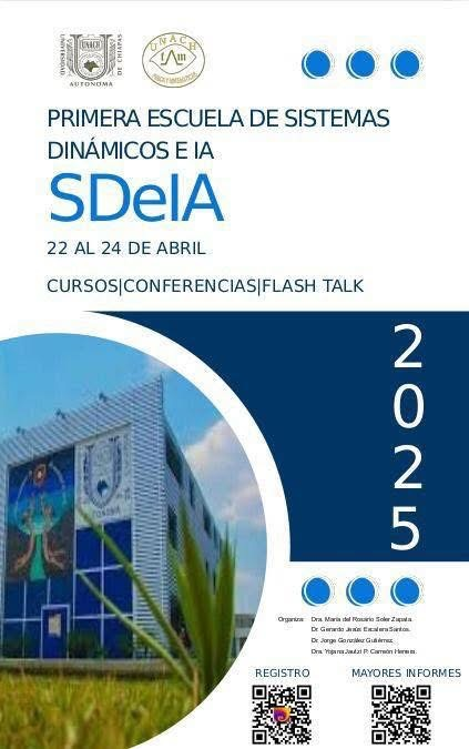 Este evento académico está dirigido a estudiantes, docentes e investigadores interesados en fortalecer sus conocimientos y habilidades en sistemas dinámicos, modelos matemáticos y técnicas de inteligencia artificial. Su objetivo es promover el estudio de herramientas avanzadas, fomentar redes académicas interdisciplinarias y explorar temas de frontera tecnológica con aplicaciones científicas reales.