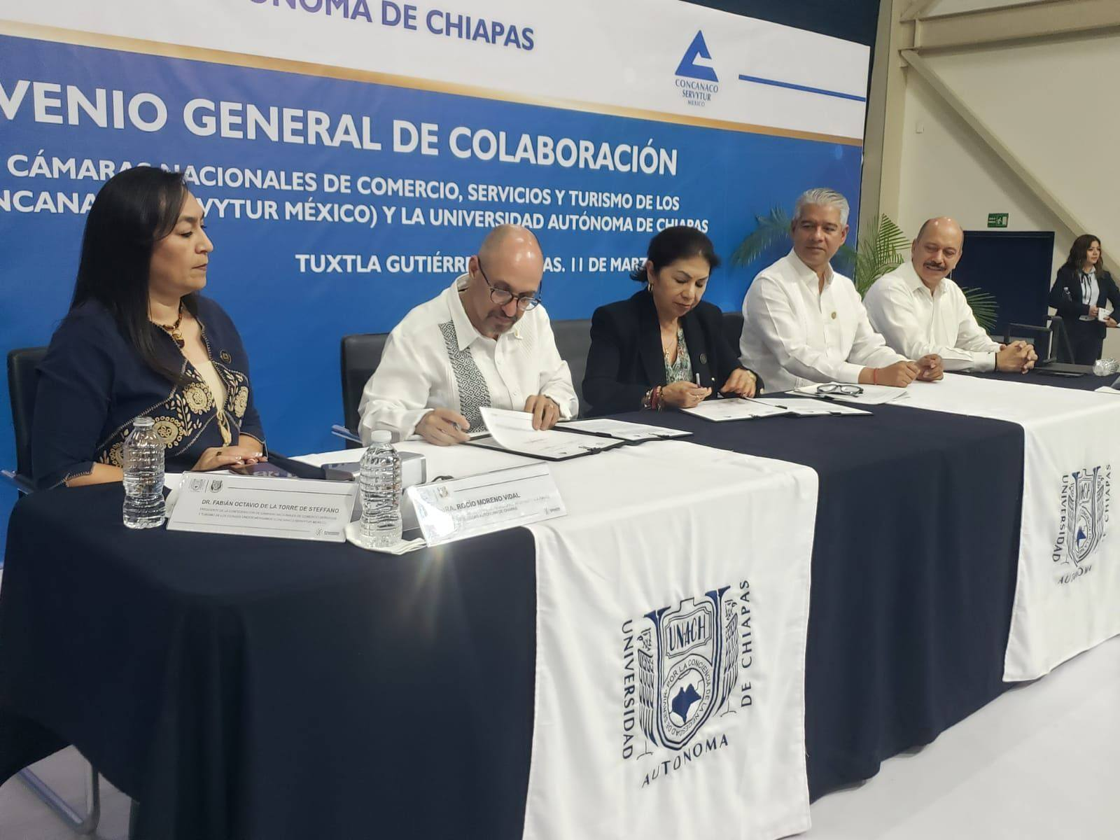 La Universidad Autónoma de Chiapas (UNACH) y la Confederación de Cámaras Nacionales de Comercio, Servicios y Turismo (Concanaco Servytur) firmaron un convenio de colaboración para establecer bases de cooperación en el ámbito académico, cultural y turístico. El acuerdo se firmó en el Centro de Convenciones Universitario “Dr. Manuel Velasco Suárez”.