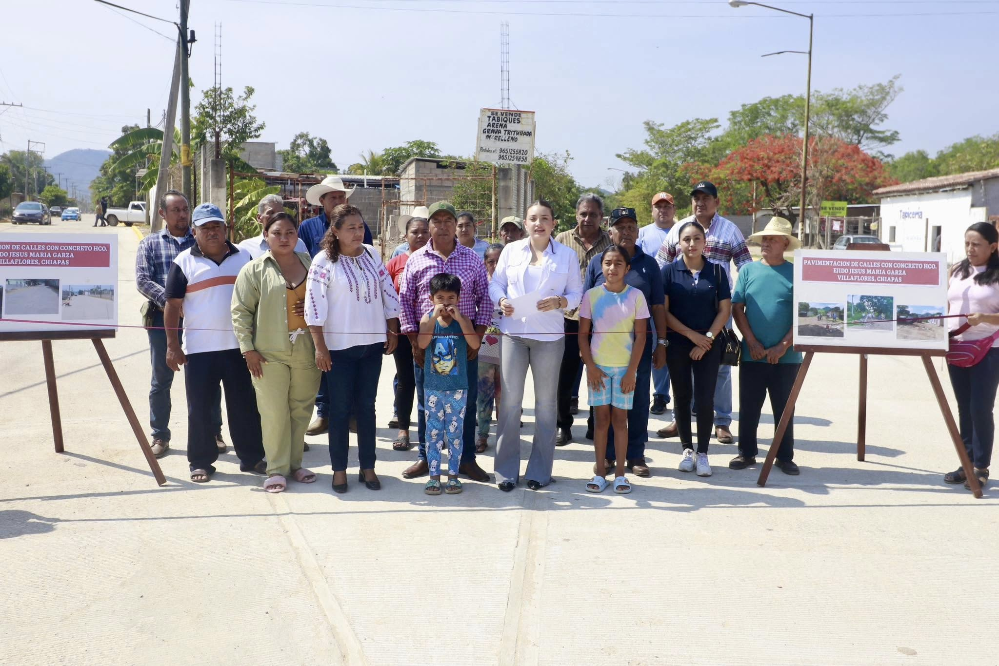 La presidenta municipal de Villaflores, Valeria Rosales Sarmiento, encabezó la inauguración de siete calles pavimentadas en el ejido Jesús M. Garza, respondiendo a una demanda histórica de los habitantes y mejorando de manera sustancial las condiciones de movilidad en la zona.