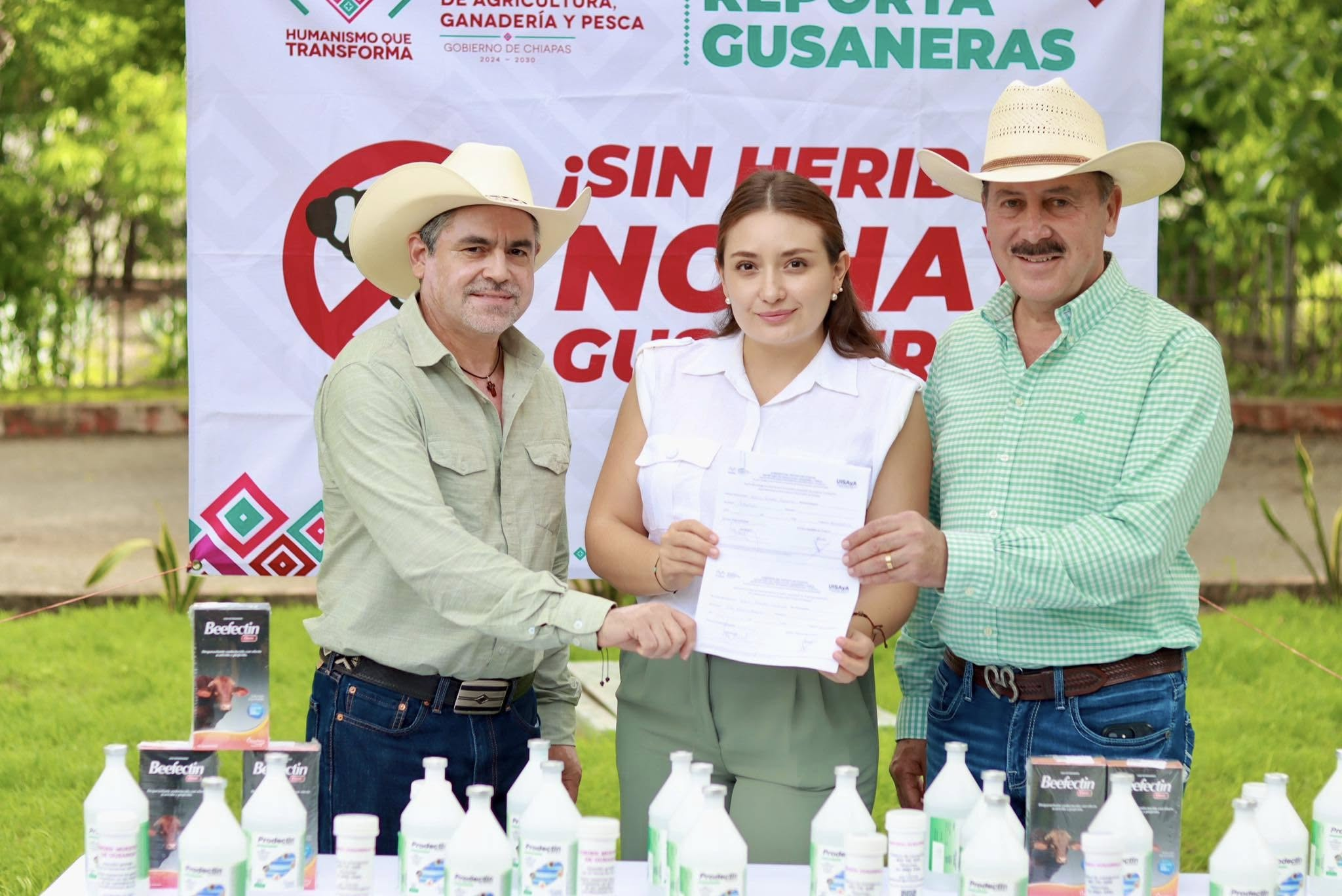 La presidenta municipal de Villaflores, Valeria Rosales Sarmiento, recibió insumos veterinarios como parte del programa emergente contra el gusano barrenador del ganado (GBG), impulsado por el Gobierno del Estado de Chiapas a través de la Secretaría de Agricultura, Ganadería y Pesca (SAGyP). Durante el acto, agradeció al gobernador Eduardo Ramírez Aguilar y al titular de la SAGyP, Marco Antonio Barba Arrocha, por el apoyo brindado a las y los productores pecuarios del municipio.
