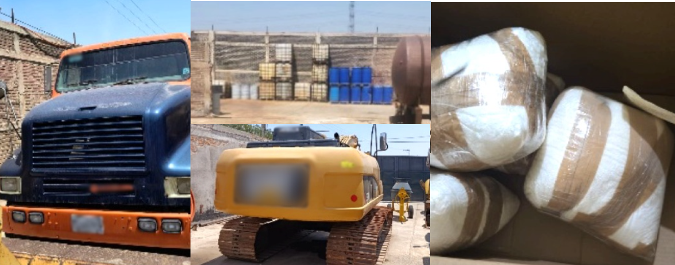 Durante la intervención, las autoridades aseguraron metanfetamina, así como sustancias químicas utilizadas para su elaboración, entre ellas ácido muriático, sosa cáustica, acetato de etilo, cloruro de bencilo, ácido clorhídrico concentrado y clorhidrato de amonio. También se decomisaron contenedores, cilindros, una pipa, una camioneta y otros objetos.